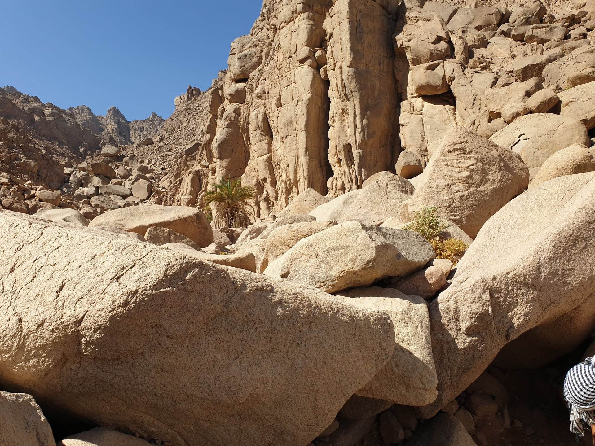 Die Beduinen leben hier, weil sie ihre eigene Quelle im Gebirge haben, die den Tieren wie Menschen Wasser spendet. Diese Quelle wollen wir besichtigen.