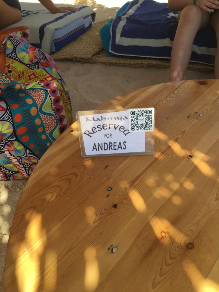 - reservierter Schattenplatz mit Sandsack, Matratzen und Badetuch