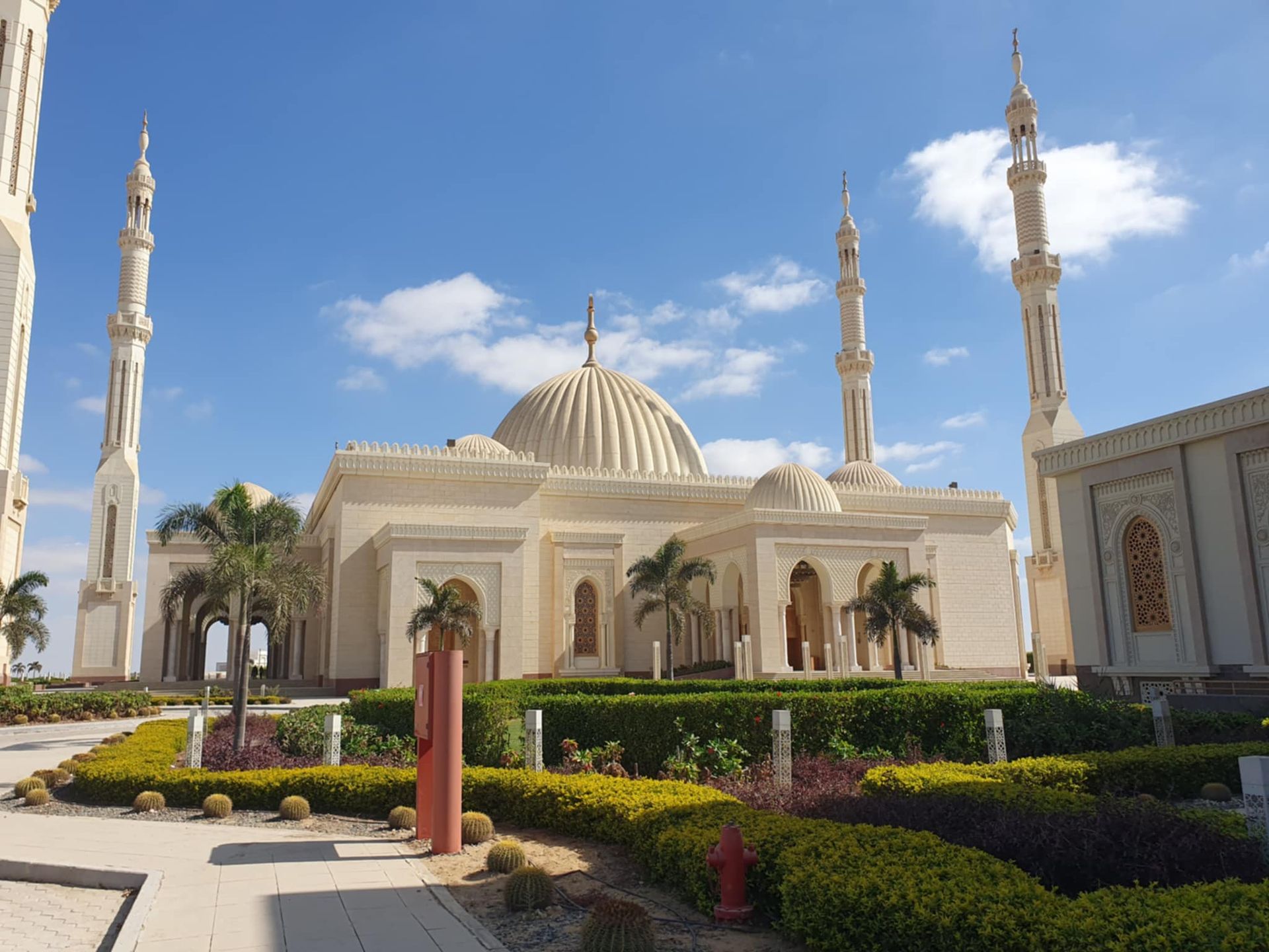 (mosgid el faetah al 3lim) gilt als die größte Moschee des Landes, die innen 1500 Plätze für Frauen, 8500 Plätze für Männer und noch weitere 7000 Plätze vor der Moschee für Gebete hat. Tatsächlich darf man diese Moschee gemeinsam als Mann und Frau besichtigen, lediglich die Schuhe müssen ausgezogen werden.